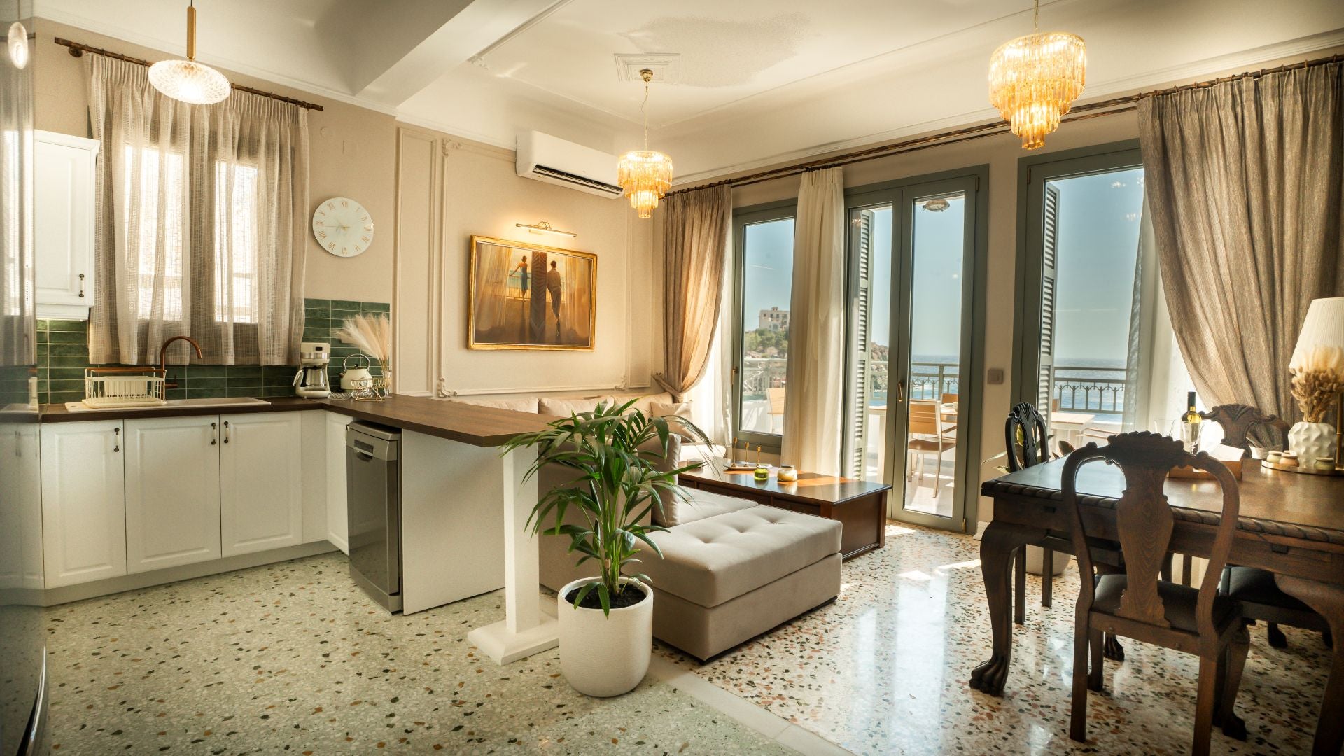 Welcome to Casa Fratelli, a neoclassical residence in the heart of Vaporia — the most iconic and historic neighborhood of Syros. This house, passed down through generations, was lovingly restored by two siblings who gave it new life, honoring its story and soul.Bathed in natural light and filled with family memories, Casa Fratelli offers more than just a stay: it’s a space where architecture, emotion, and aesthetics meet in perfect harmony. Nestled in a truly authentic corner of the island, just steps from the sea, it blends the charm of Cycladic simplicity with the elegance of Aegean nobility.