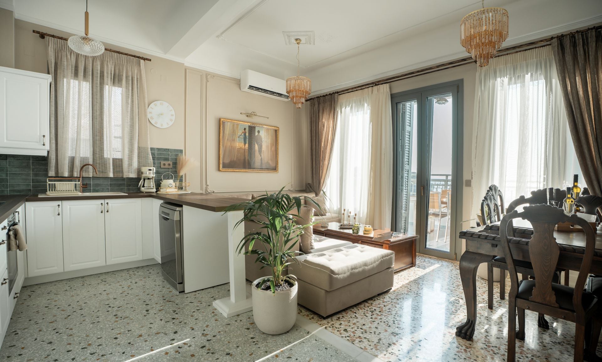 Feel at home in a bright living space with sea views and soft, welcoming details.Cook, relax, and share moments in a kitchen made for real connection and comfort.
